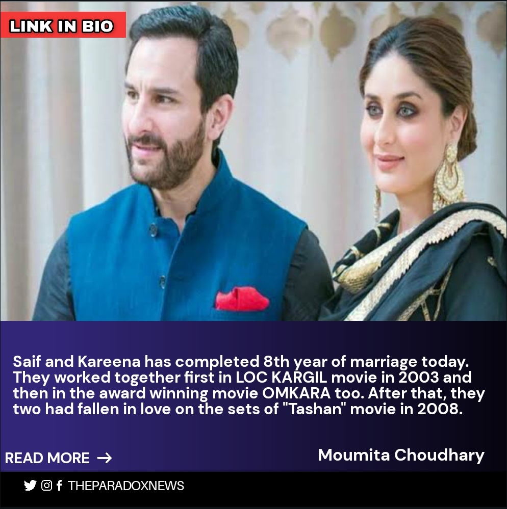 Saif and Kareena has completed 8th year of marriage today. They worked together first in LOC KARGIL movie in 2003 and then in the award winning movie OMKARA too. After that, they two had fallen in love on the sets of “Tashan” movie in 2008.