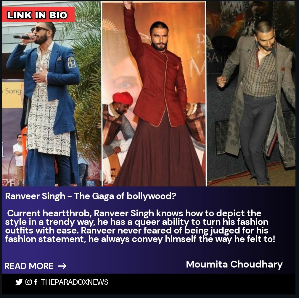 Current heartthrob, Ranveer Singh knows how to depict the style in a trendy way, he has a queer ability to turn his fashion outfits with ease. Ranveer never feared of being judged for his fashion statement, he always convey himself the way he felt to!