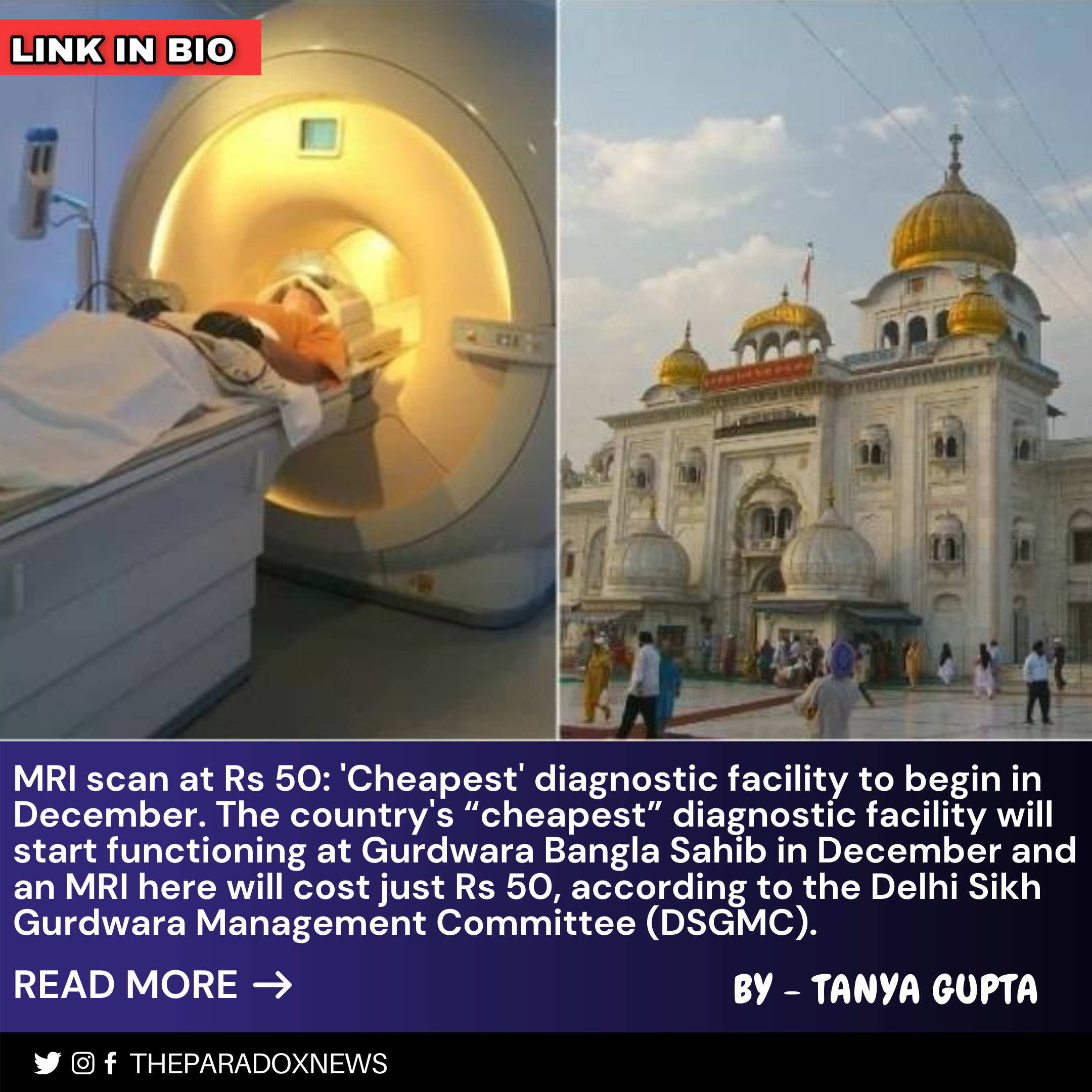Gurudwara Bangla Sahib, located in Delhi, is one of the most well-known religious places. This peaceful place of solace is visited by almost more than a thousand people in one single day. And at this peaceful shrine the country’s “cheapest” diagnostic facility will be implemented from the first week of December. An MRI here will cost just ₹50, according to Delhi Sikh Gurudwara Management Committee. This seems to be great news for all of us, especially to needy people. Right!!