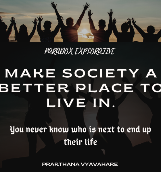 Don’t make someone feel death is easier than convincing the society. Don’t make someone sacrifice dreams due to you, because you are a part of society, and making a small difference in you is a small difference in society, and eventually a big difference