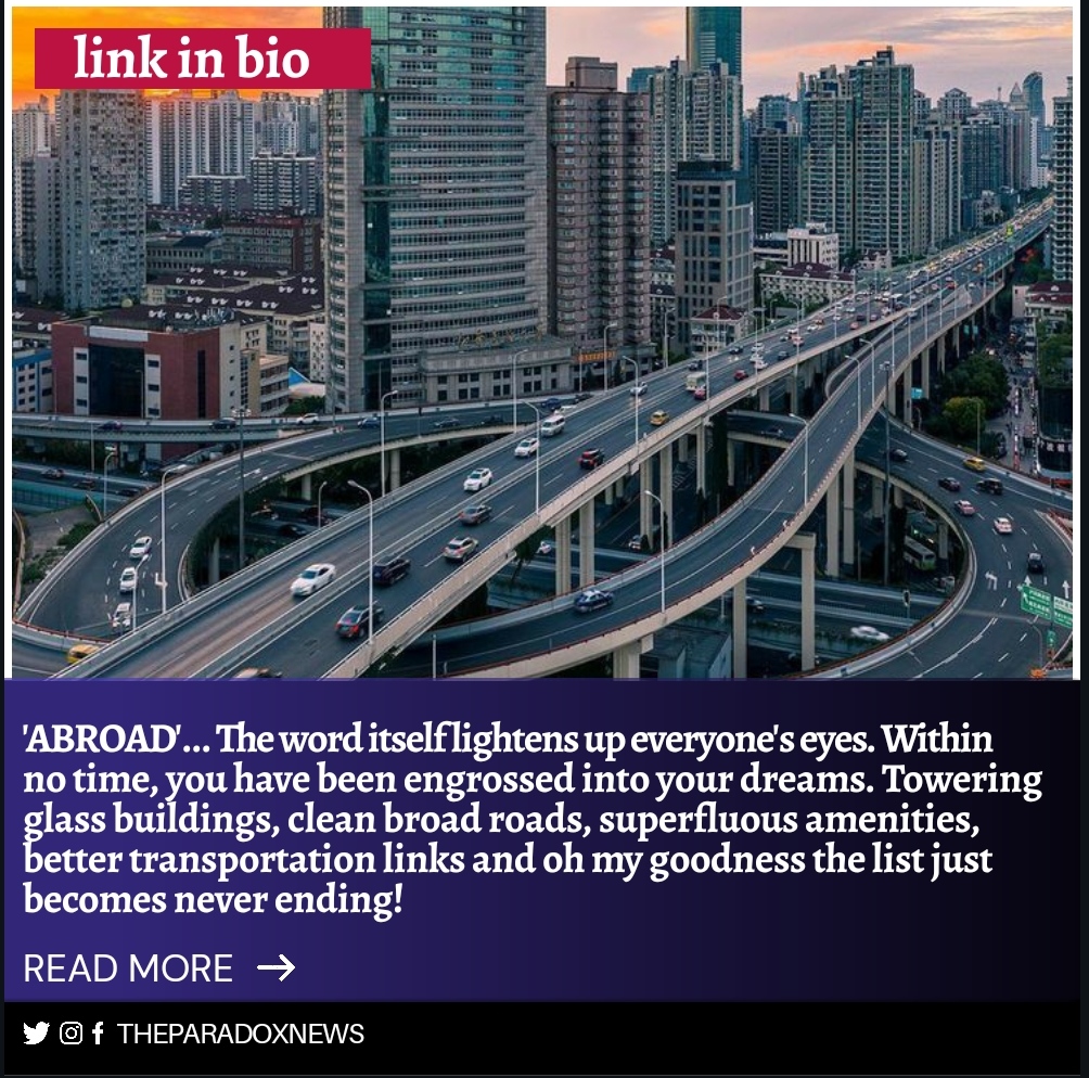 ‘ABROAD’… The word itself lightens up everyone’s eyes. Within no time, you have been engrossed into your dreams. Towering glass buildings, clean broad roads, superfluous amenities, better transportation links and oh my goodness the list just becomes never ending!